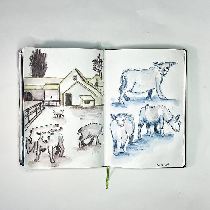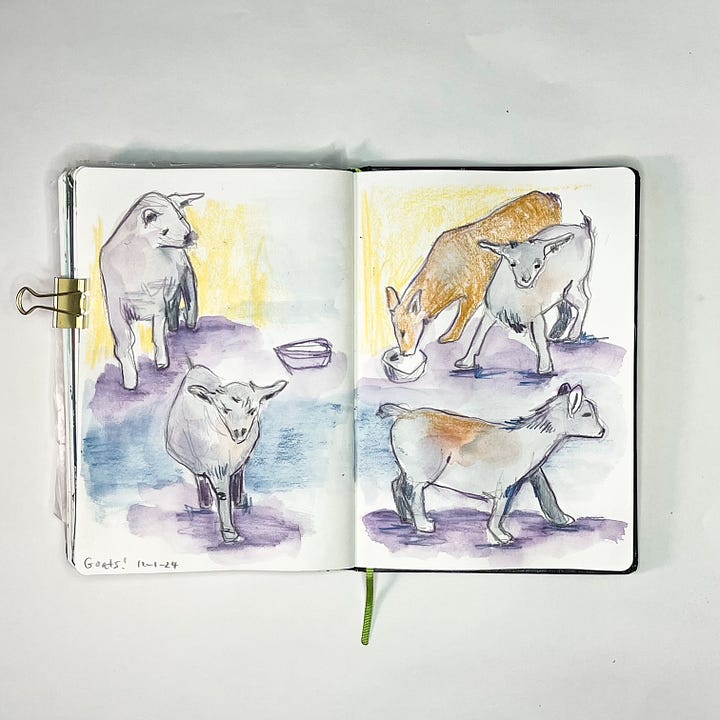 The goats are drawn in a better quality sketchbook - the paper makes a huge difference!